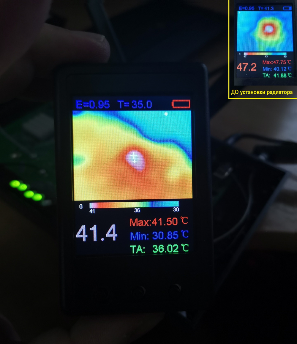 Вот такой результат по температуре получился у меня после установки доп. радиатора на камень: